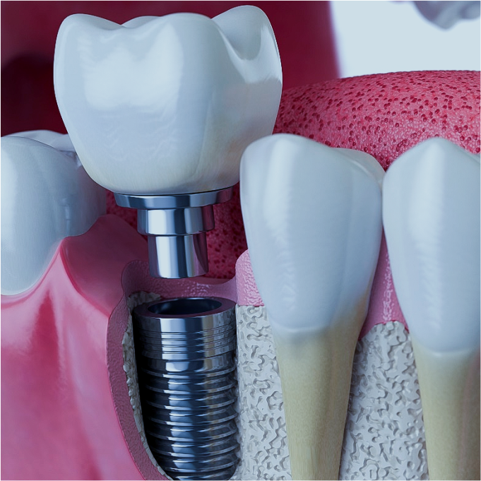 Quando, por algum motivo, perdemos um ou mais dentes, o implante torna-se uma ótima opção para devolver a função e estética deste(s). O pino do implante substitui a raiz do dente perdido e suporta a prótese sobre implante, devolvendo a anatomia desejada.